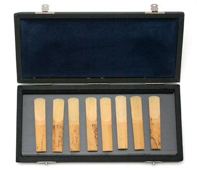 Air tight reed case with humidity control. Holds up to eight reeds.