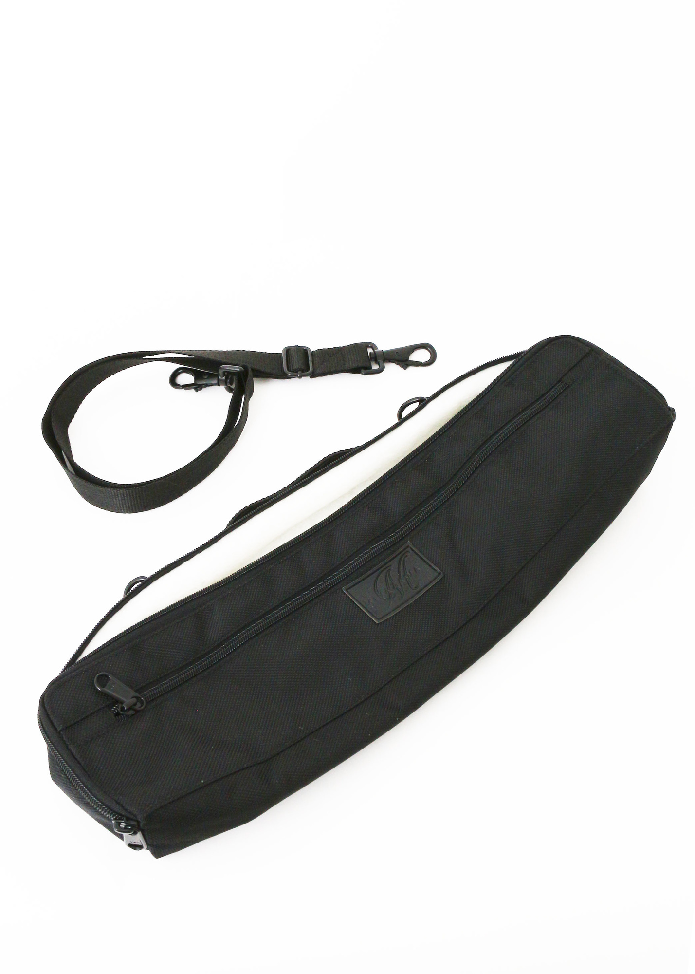 Miyazawa overtræk til tværfløjte-etui. Sort nylon, med sidelomme og skulderstrop.